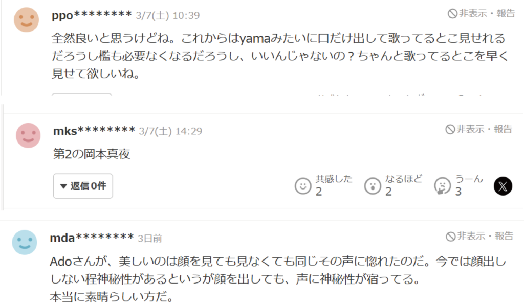 このAdoさんの素顔の公表についてファンの間では意見が分かれているようです。